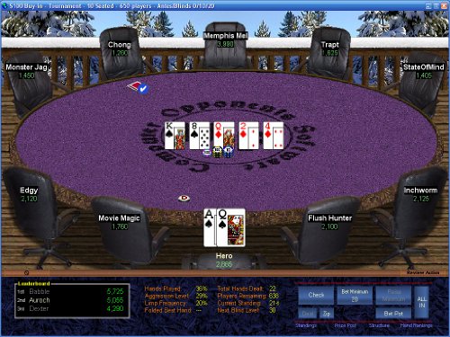 - Play with your choice of (14) exotic screen backgrounds, (7) table colors, and (7) deck styles.