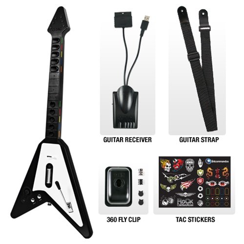 This guitar linked up immediatly and works well with my ps3 playing rock band. Only issue i have had with it is the keys are raised a little high after having played with the stock rock band guitar this makes sliding for orange notes hard, and i have found you have to position your hand fully on the keys or they don't depress enough to get full contact, which again after playing the stock guitar and being able to just touch the lips of the keys makes for a degree of having to re-orient to the style. It definalaty is more well constructed than the stock guitar, and the strum bar is just like the GH guitars, steardy and and got the infamous click. over all i think its a good guitar but not ergonomicaly suited to me. I have decently large hands, so small handed people may have issues with it. but i havn't played with any i found all that comfy to hold for long periods any way. all in all a good product from The Ant Commandos.